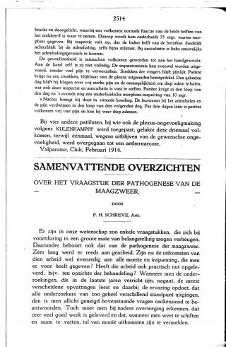 Dit artikel is alleen beschikbaar als PDF.Lees de PDF Artikelinformatie Online verschenen op 27 mei 1914 Citeer dit artikel als Ned Tijdschr Geneeskd. 1914;58:2514-28 Heb je nog vragen na het lezen van dit artikel? Check onze AI-tool en verbaas je over de antwoorden. ASK NTVG Ook interessant Onderzoek De pathogenese van de chronische maagzweer Onderzoek De pathogenese van de maagzweer van tropisch standpunt bekeken Nieuws Over de pathogenese en heelkundige behandeling van de ronde maagzweer Meer gerelateerd … Reacties Login om een reactie te plaatsen