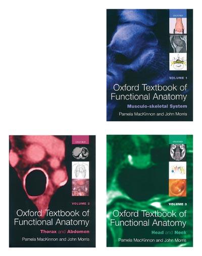 P.MacKinnon en J.Morris,Oxford textbook of functional anatomy. 2e druk. 3-volume set. Vol.1: Musculo-skeletal system. Vol.2: Thorax and abdomen. Vol.3: Head and neck. 698 bl., fig., tabellen. Oxford University Press, Oxford 2005. ISBN 0-19-856960-2/0-19-856961-0/0-19-856962-9. Prijs: ingen. € 83,42.