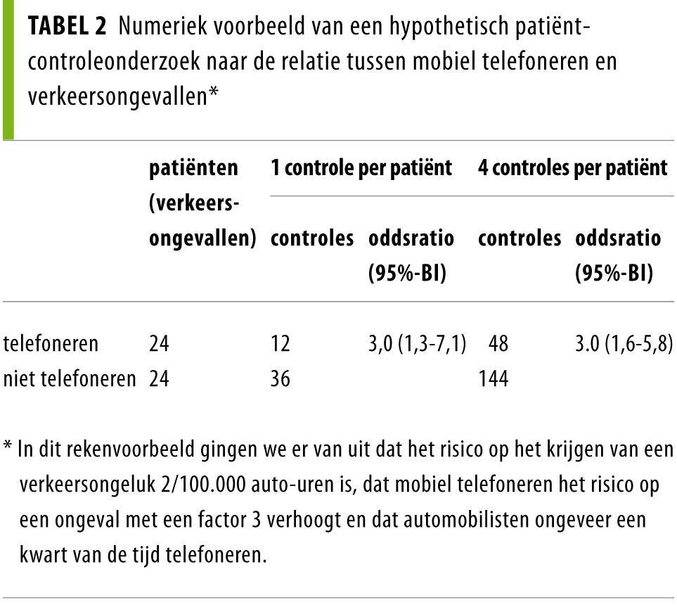 Wij illustreren het patiënt-controleonderzoek met een onderzoek naar de relatie tussen mobiel telefoneren en het risico op verkeersongevallen. Daarbij is er vooral aandacht voor het selecteren van de controles.