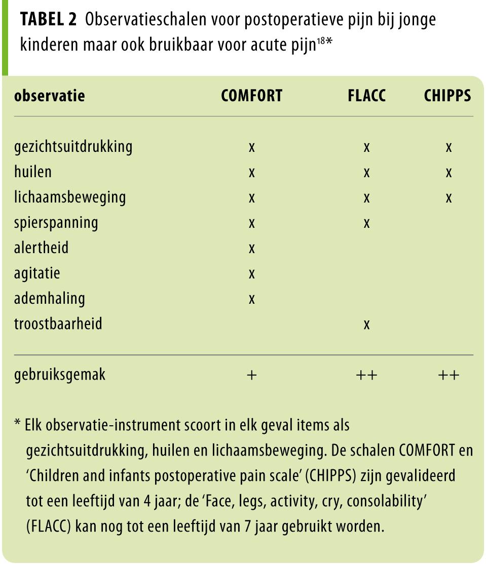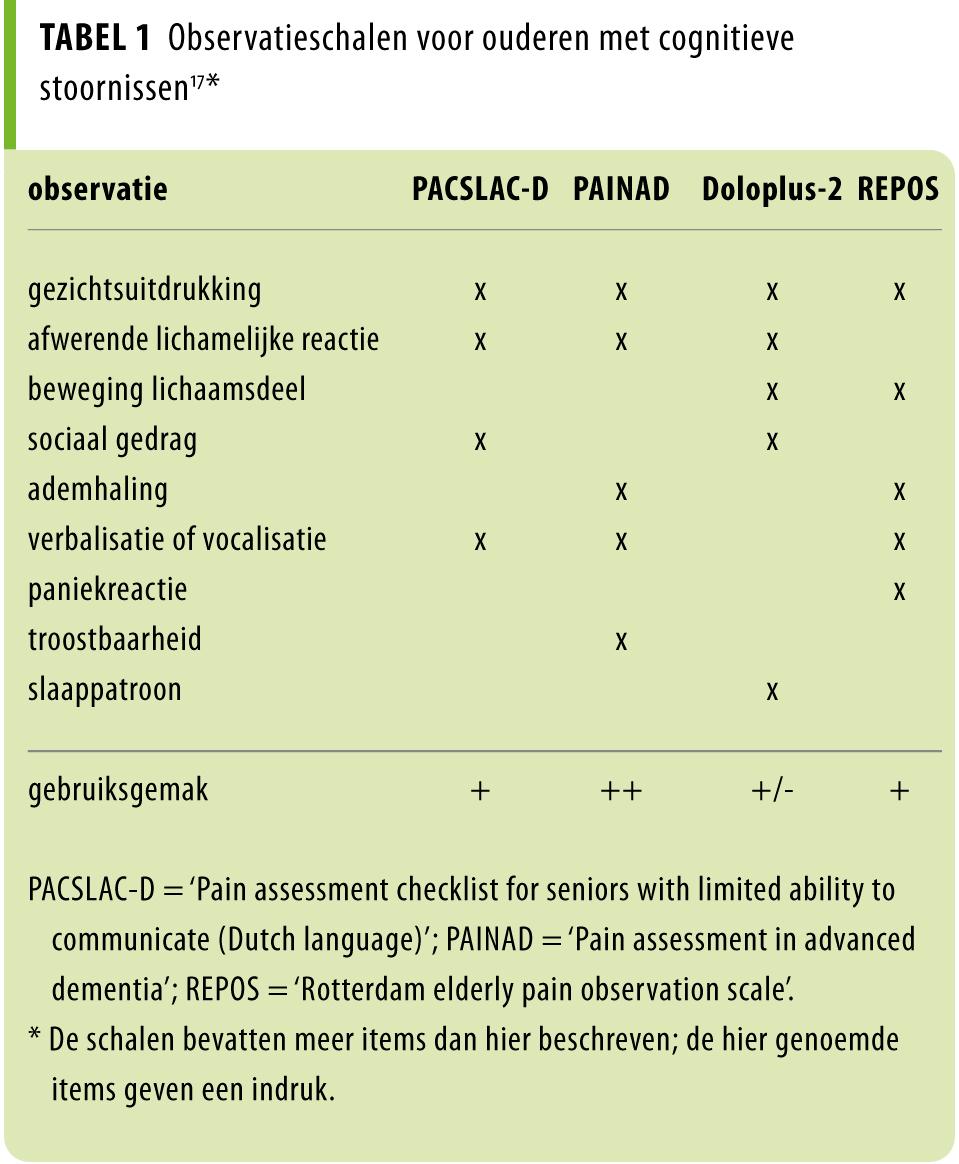 - Er zijn diverse eenvoudige en betrouwbare observationele schalen voor patiënten die niet goed kunnen rapporteren, zoals cognitief beperkte oudere patiënten of jonge kinderen.