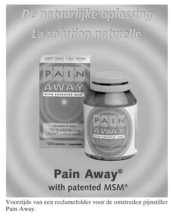 Met een uitgebreide campagne in bladen als Privé, Story en Libelle maakt de firma OTC-Pharma uit Gorinchem reclame voor de nieuwe pijnstiller Pain Away. Dit middel wordt aangeprezen als een ‘voor Europa revolutionaire nieuwe, uitstekende pijnstiller’ die ‘absoluut geen bijwerkingen kent’ (figuur). Volgens een drogist is Pain Away…