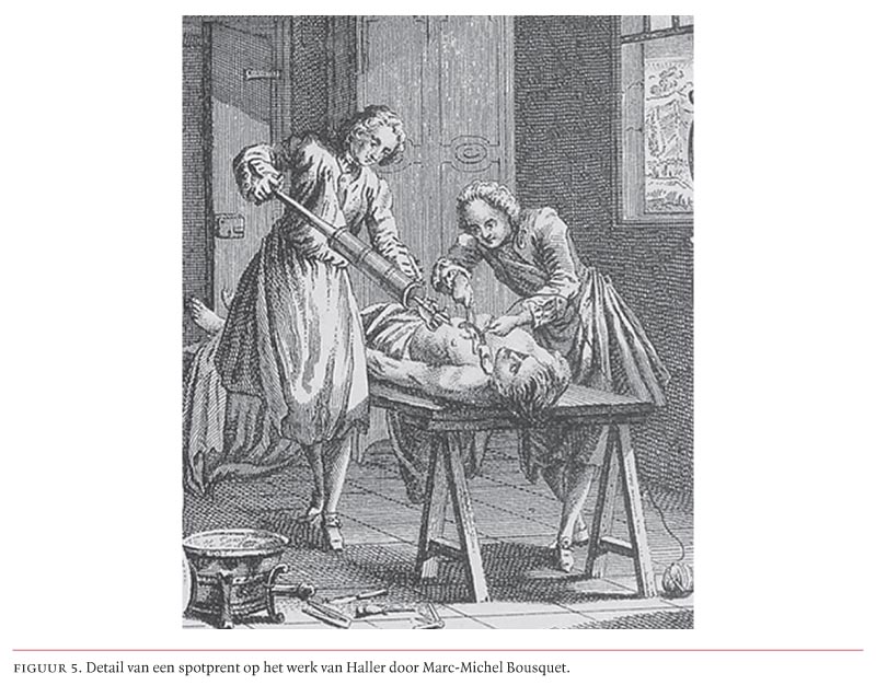 In de 18e eeuw bestond bij vele artsen nog de idee dat er zich lucht zou bevinden tussen de pleura parietalis en de longen. Dit ondanks de experimenten van Albrecht von Haller (1708-1777) bij menselijke kadavers en levende honden, waarmee deze al in 1746 had aangetoond dat dit niet het geval is (figuur 5), maar dat de pleura parietalis en de longen tegen elkaar aanliggen.17 Of, zoals John Snow (1813-1858) het een eeuw later (1841) zei tijdens een voordracht voor de Westminster Medical Society: ‘The pleura on each side is an empty bag, merely lubricated on its inner surface with serum; . . . Whenever any fluid, whether a liquid or a gas, accumulates within the pleura, it is desirable that we should get rid of it . . .’ Hij beschreef hoe tijdens de ingreep luchtlekkage naar de pleuraholte kon worden voorkomen.18