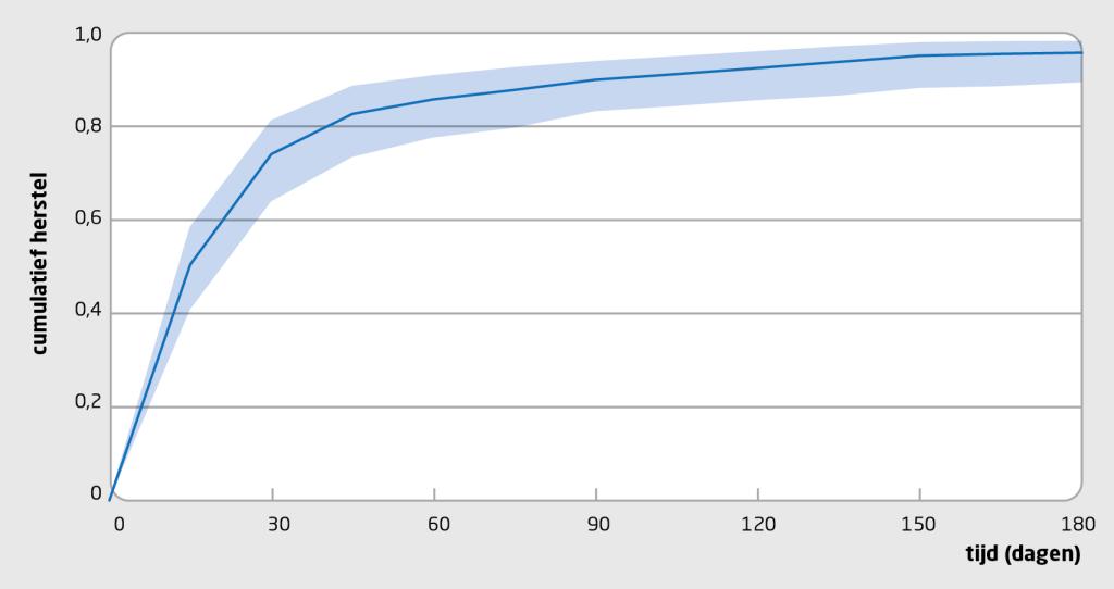 Nieuws in beeld | Cumulatief herstel (met 95%-betrouwbaarheidsinterval) van het reukvermogen na covid-19