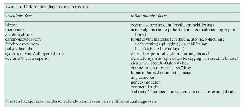 - Rosacea kan moeilijk te onderscheiden zijn van acne vulgaris, seborroïsch eczeem, dermatitis perioralis en lupus erythematosus.