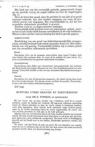 Dit artikel is alleen beschikbaar als PDF.Lees de PDF Artikelinformatie Online verschenen op 12 augustus 1949 Citeer dit artikel als Ned Tijdschr Geneeskd. 1949;93:3827-30 Heb je nog vragen na het lezen van dit artikel? Check onze AI-tool en verbaas je over de antwoorden. ASK NTVG Ook interessant Media Oedema acutum cervicis uteri gravidi, parturientis s. puerperalis intermittens Media Ruptura uteri durante partu Casuïstiek Een geval van ruptura uteri durante partu door uitwendig trauma Meer gerelateerd … Reacties Login om een reactie te plaatsen
