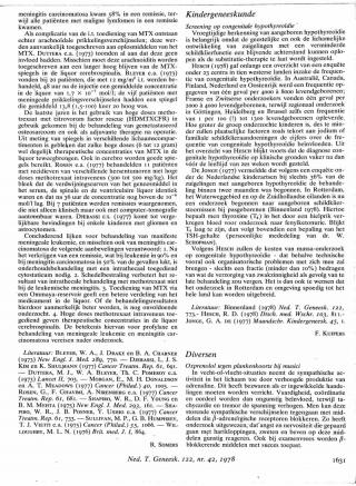 Dit artikel is alleen beschikbaar als PDF.Lees de PDF Artikelinformatie Online verschenen op 8 april 1978 Citeer dit artikel als Ned Tijdschr Geneeskd. 1978;122:1631 Heb je nog vragen na het lezen van dit artikel? Check onze AI-tool en verbaas je over de antwoorden. ASK NTVG Ook interessant Onderzoek Neonatale screening op congenitale hypothyreoïdie Mededelingen Draaiboek screening op fenylketonurie en congenitale hypothyreoïdie Onderzoek Evaluatie van een decennium neonatale screening op congenitale hypothyreoïdie in Nederland Meer gerelateerd … Reacties Login om een reactie te plaatsen