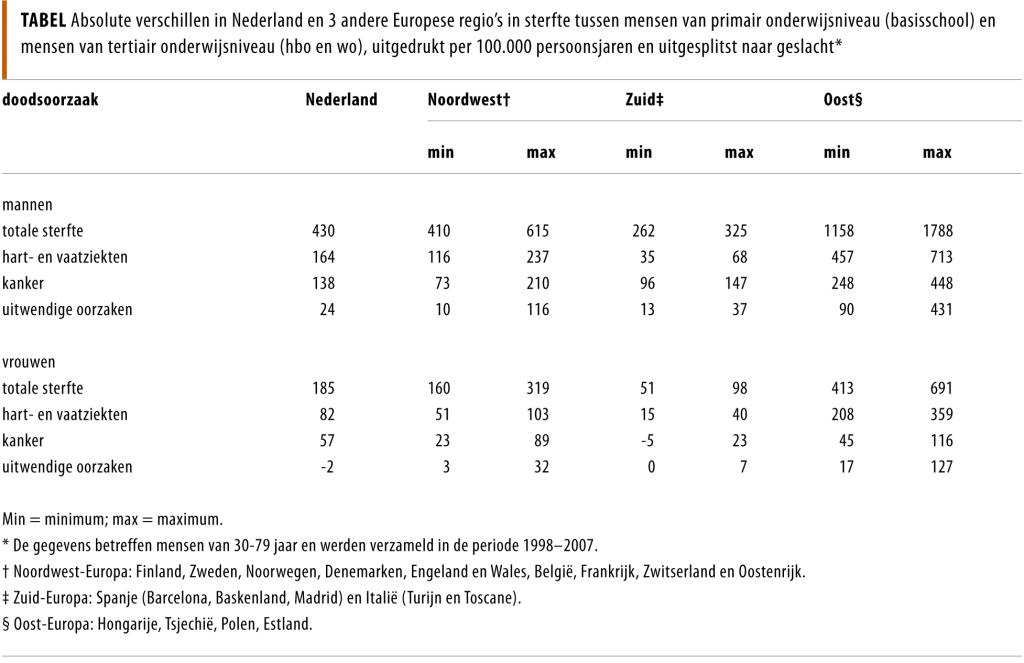 *Dit onderzoek werd eerder gepubliceerd in International Journal of Public Health (27 juni 2014 (epub)) met als titel ‘Educational inequalities in mortality by cause of death: first national data for the Netherlands.’ Afgedrukt met toestemming.