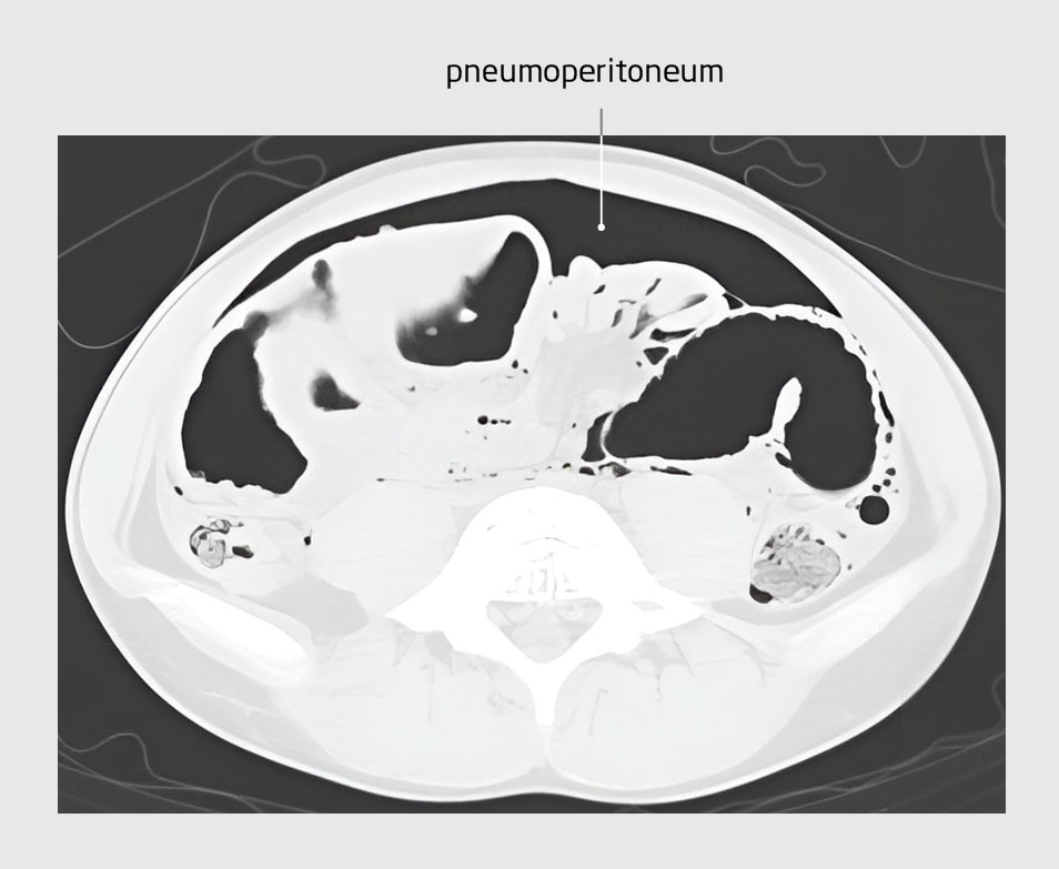 Een 12-jarige jongen kwam bij de huisarts vanwege aanhoudende buikpijnklachten en hevig braken. Hij collabeerde in de huisartsenpraktijk en werd gereanimeerd tijdens het vervoer naar het ziekenhuis. Daar aangekomen overleed hij. Zijn voorgeschiedenis vermeldde een pyloromyotomie via een supra-umbilicale incisie. Het postoperatieve beloop werd gecompliceerd door een fasciedehiscentie, waarvoor een hersteloperatie werd verricht. Sinds zijn zesde levensjaar had de patiënt recidiverende buikpijnklachten gehad. Bij obductie werd feces gezien in de vrije buikholte en een tweetal darmperforaties bij een adhesie van het jejunum aan de buikwand ter hoogte van het litteken van de pyloromyotomie. Distaal van de adhesie was sprake van een inwendige herniatie van het dunnedarmpakket.