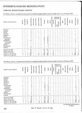 Dit artikel is alleen beschikbaar als PDF.Lees de PDF Artikelinformatie Online verschenen op 11 februari 1973 Citeer dit artikel als Ned Tijdschr Geneeskd. 1973;117:658 Heb je nog vragen na het lezen van dit artikel? Check onze AI-tool en verbaas je over de antwoorden. ASK NTVG Ook interessant Onderzoek Tabellen besmettelijke ziekten Onderzoek Tabellen besmettelijke ziekten Onderzoek Tabellen besmettelijke ziekten Meer gerelateerd … Reacties Login om een reactie te plaatsen
