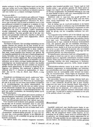 Dit artikel is alleen beschikbaar als PDF.Lees de PDF Artikelinformatie Online verschenen op 25 maart 1974 Citeer dit artikel als Ned Tijdschr Geneeskd. 1974;118:1385 Heb je nog vragen na het lezen van dit artikel? Check onze AI-tool en verbaas je over de antwoorden. ASK NTVG Ook interessant Onderzoek Twintig jaar coeliakie bij kinderen in Nederland: meer diagnosen en een veranderde verschijningsvorm Nieuws Onveranderde ziektecijfers van tuberculose Nieuws Veranderde zorgbekostiging Meer gerelateerd … Reacties Login om een reactie te plaatsen