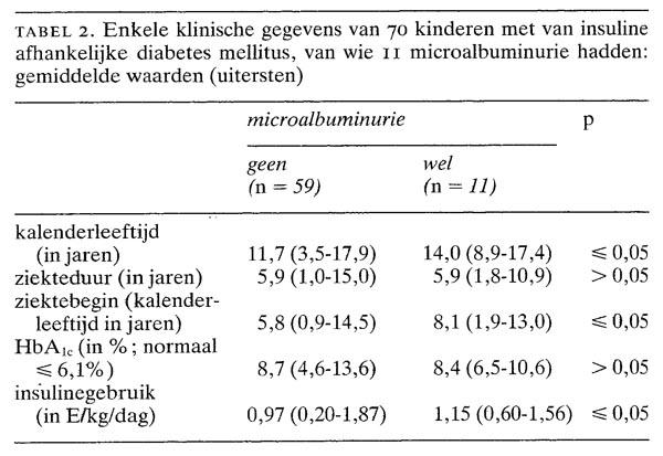 In het artikel van M.A.Baak et al. ‘Microalbuminurie risicofactor voor nefropathie bij kinderen met van insuline afhankelijke diabetes mellitus’ (1993; 1349-52) is op bl. 1350 rechter kolom tabel 2 onjuist weergegeven. De juiste weergave staat hieronder.