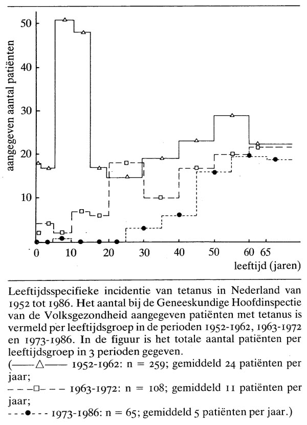 In het artikel H.C.Rümke ‘Evaluatie van het Rijksvaccinatieprogramma’ (1989: 866-8) is de figuur op bl. 867 door het wegvallen van de omschrijving van de perioden onbegrijpelijk geworden. De figuur wordt hierbij nogmaals afgedrukt met het aangevulde onderschrift.