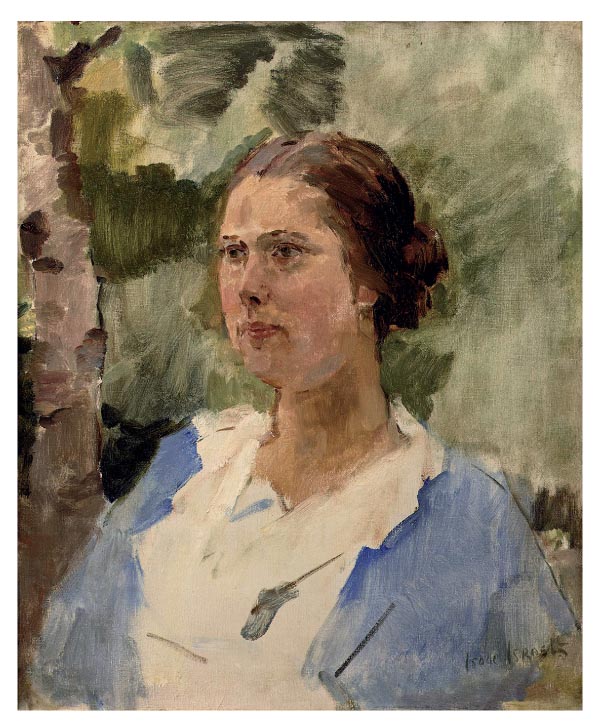 Veilinghuis Christie’s veilde op 16 april 2008 dit olieverfschilderij van Isaac Lazarus Israels (1865-1934). Israels, die als kleine man graag modieuze en te strakke schoenen met verhoogde hakken en smalle punten droeg, werd wegens zijn ‘moeilijke voeten’ in december 1919 geopereerd door de chirurg dr. Jan Schoemaker. Deze corrigeerde Israels’ halluces valgi. Destijds werd na deze operatie 6 weken bedrust voorgeschreven, zodat Israels alle tijd had om aspecten van het ziekenhuisleven af te beelden.1 Dat deed hij voor een belangrijk deel door tekenen en aquarelleren in een schetsboek. Hij schilderde echter ook, zoals blijkt uit dit portret van een verpleegster, dat sterk lijkt op afbeeldingen die in zijn schetsboek voorkomen.