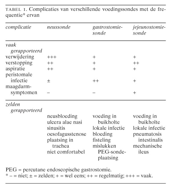 Zorgvuldige patiëntenselectie, een juiste keuze uit de verschillende ter beschikking staande voedingssondes en een zorgvuldige controle van de toegepaste voedingstherapie zijn dan ook noodzakelijk.