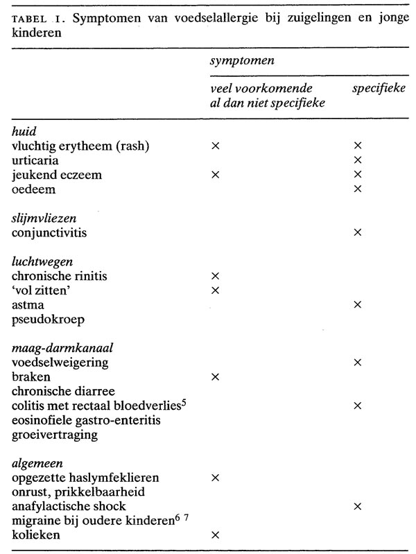 Ongewenste reacties na het gebruik van voedingsmiddelen kunnen op verschillende manieren tot stand komen. Dit overzicht beperkt zich tot de symptomen die het gevolg zijn van een immunologische reactie op een voedselallergeen. Voedselallergie (VA) richt zich in het bijzonder tegen eiwitten in de voeding. Hoewel VA bij volwassenen niet zeldzaam is, komt de aandoening vooral voor bij zuigelingen en jonge kinderen. Epidemiologisch onderzoek laat zien dat 2-19 van de kinderen in deze leeftijdscategorieën verschijnselen van VA heeft.1-4