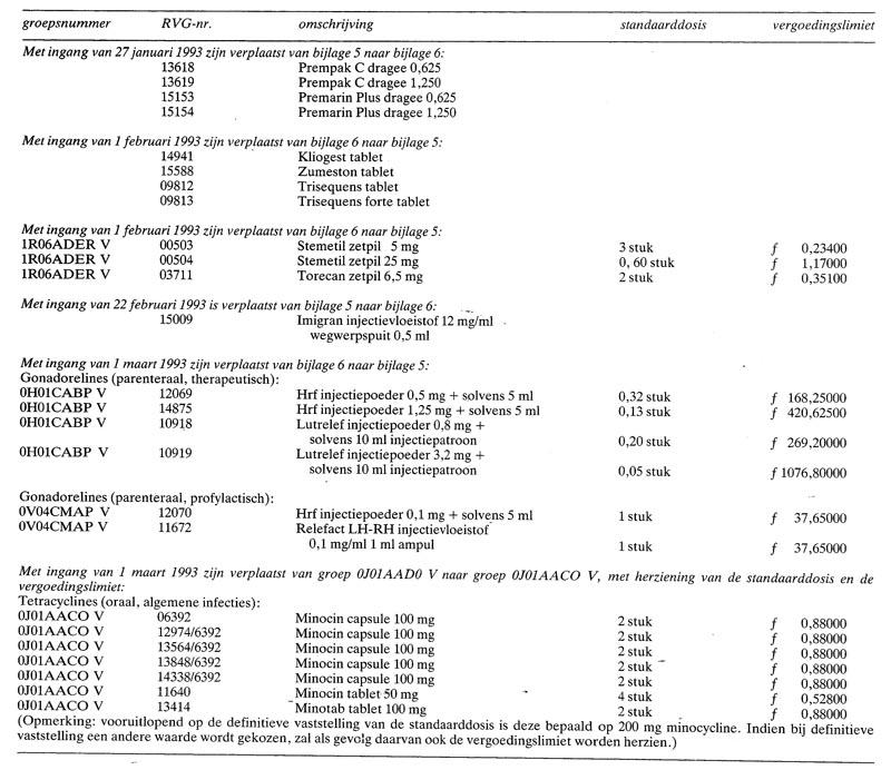 Het ministerie van Welzijn, Volksgezondheid en Cultuur heeft de onderstaande wijzigingen aangebracht in het geneesmiddelenvergoedingssystemen (GVS). Alleen reeds ingedeelde produkten waarvan de indeling is, of wordt, gewijzigd zijn vermeld.