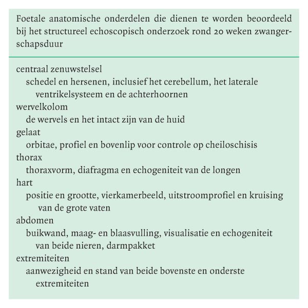 Echoscopische beeldvorming is in de afgelopen 20 jaar dusdanig verbeterd dat in het tweede trimester van de zwangerschap een gedetailleerd beeld kan worden verkregen van de foetale anatomische kenmerken. Sinds kort omvat de standaardzorg voor de zwangere vrouw de mogelijkheid om rond de 20 weken structureel echoscopisch onderzoek (SEO) uit te laten voeren. Hierbij kan een groot aantal ernstige foetale afwijkingen worden vastgesteld (tabel).